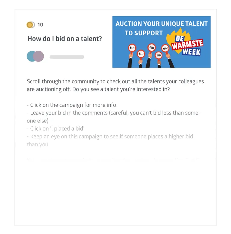 Unique organized a talent auction to raise money to donate to De Warmste Week toward social exclusion: they created a Form campaign for employees to sign up and auction one of their talents.